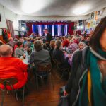 Die Bühne (8 x 3,5 m, lichte Höhe 2,8 m) hat wie der Saal einen Holzfußboden. Die technische Ausstattung ist für Kleinkunst ausgelegt. Bei (den sehr seltenen) Musikveranstaltungen mieten wir dazu. Ton & Licht (PDF)